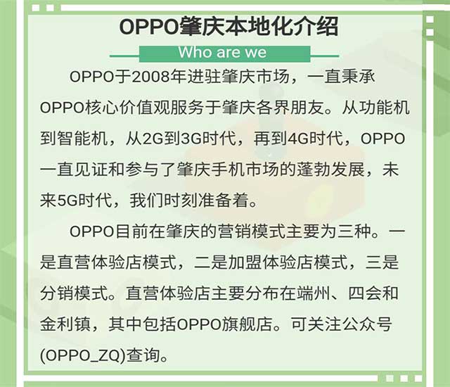本公司主要從事手機(jī)零售及中國移動(dòng)、中國電信、中國聯(lián)通相關(guān)運(yùn)營業(yè)務(wù)。主要以O(shè)PPO官方授權(quán)體驗(yàn)店為核心。這里有讓你大展拳腳的平臺(tái),這里有同心協(xié)力的團(tuán)隊(duì),這里有更高的晉升空間。OPPO官方授權(quán)體驗(yàn)店歡迎你的加入。