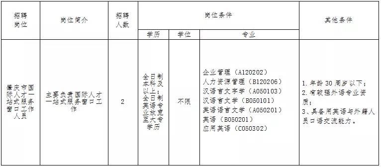 3、具有全日制本科及以上學(xué)歷;全日制英語(yǔ)專(zhuān)業(yè)放寬至大專(zhuān)學(xué)歷。