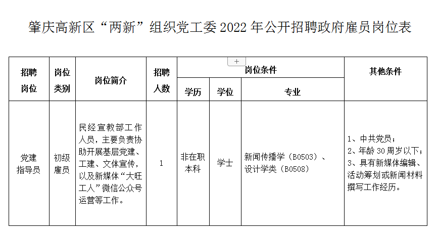 本公告來源于肇慶高新技術(shù)產(chǎn)業(yè)開發(fā)區(qū)(http://www.zqgx.gov.cn/),原文網(wǎng)址(http://www.zqgx.gov.cn/ggtz/content/post_2653223.html),如需查看完整公告或下載報(bào)名表,請打開原文網(wǎng)址。