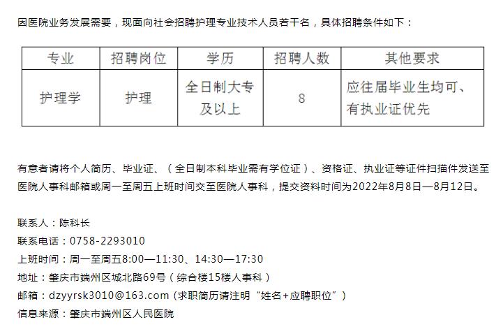 肇慶市端州區(qū)人民醫(yī)院招聘啟事
