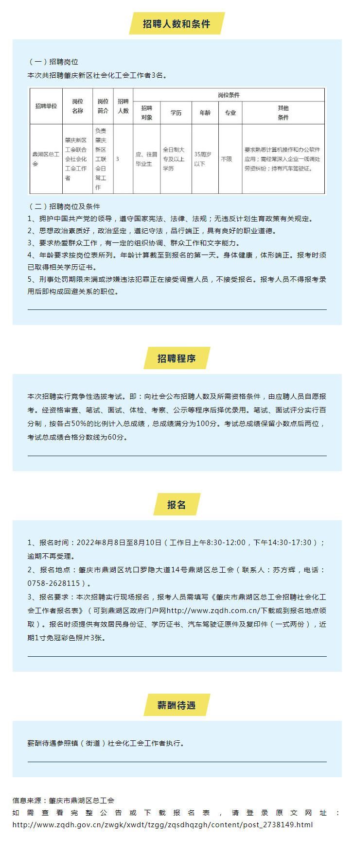 肇慶市鼎湖區(qū)總工會(huì)公開(kāi)招聘社會(huì)化工會(huì)工作者公告