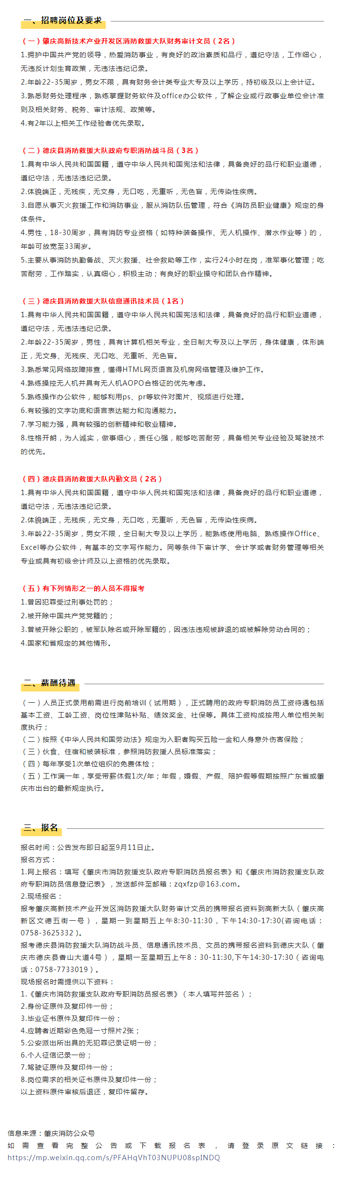 肇慶市消防救援支隊(duì)招聘政府專職消防員公告