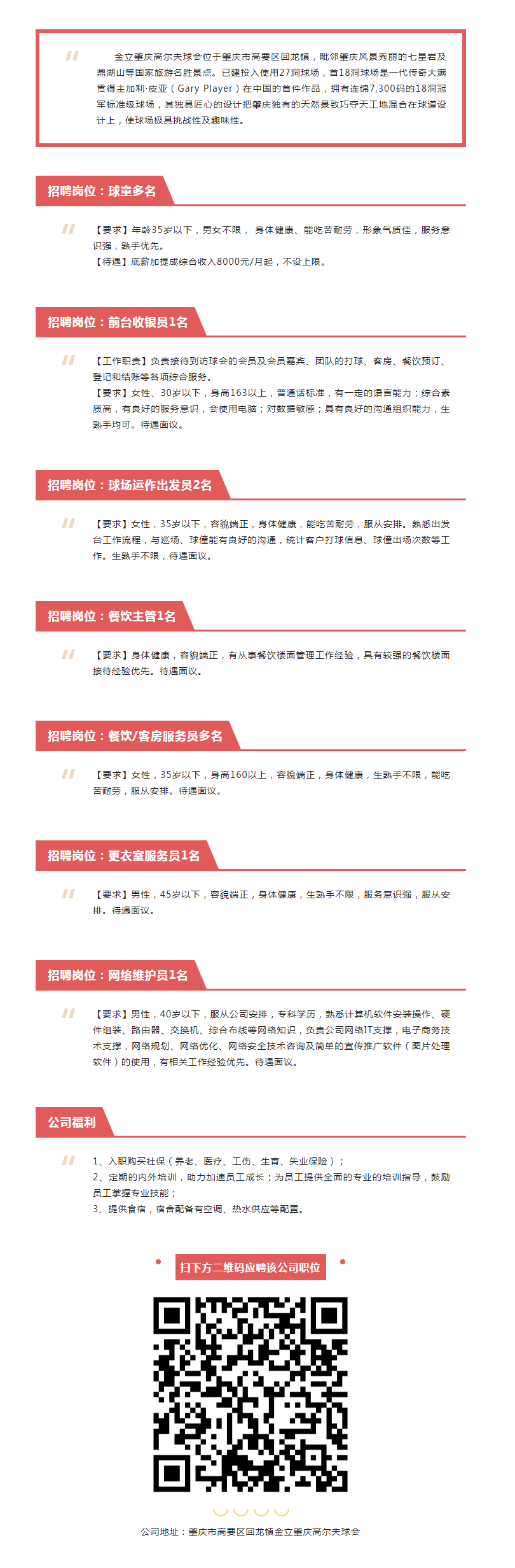 【專場招聘】肇慶金立高爾夫體育發(fā)展有限公司